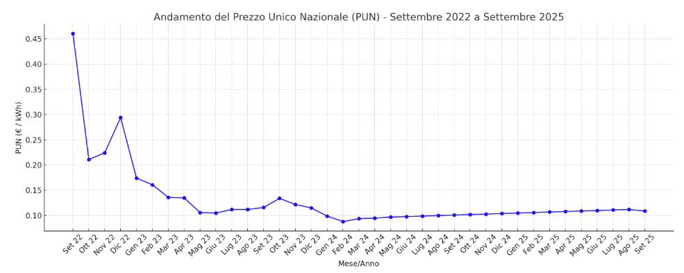 Il PUN, il Prezzo Unico Nazionale dell’energia elettrica, ha beneficiato di una trasformazione in atto: il boom delle rinnovabili.Nella primavera 2025 quasi la metà della domanda elettrica italiana è stata coperta da fonti pulite: fotovoltaico, eolico e idroelettrico. In alcune giornate di aprile, la produzione solare ha ridotto i prezzi all’ingrosso fino a livelli prossimi allo zero nelle ore centrali. Un fenomeno che solo pochi anni fa sarebbe sembrato impensabile.